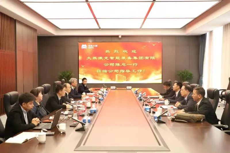 中機六院毛總對陳總一行表示熱烈歡迎,對中機六院與大族激光智能裝備集團的強強聯合表示熱烈的祝賀,并圍繞其公司三大業務、三大領域、三項創新技術等方面詳細介紹了業務發展和科技創新情況。毛總表示,對此次戰略合作充滿信心,希望雙方發揮各自優勢,在智能工廠、智慧園區、科技研發等方面建立長期、穩定的戰略合作關系,共同開創合作共贏的新局面。