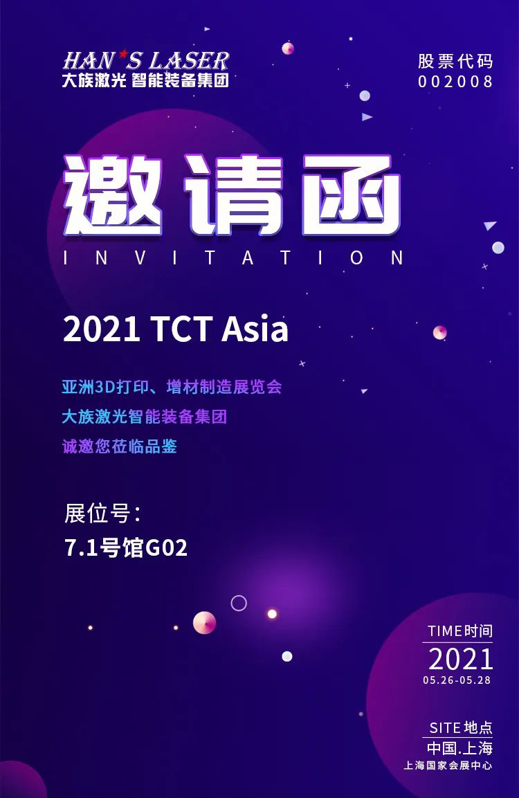 400-666-4000 激光世界,應(yīng)用無界。大族激光智能裝備集團將攜多款增材制造3D打印設(shè)備亮相TCT Asia 3D打印展,以新技術(shù)、新工藝、新裝備的嶄新面貌,對話行業(yè)、賦能市場、服務(wù)社會,誠邀您現(xiàn)場體驗更多精彩!